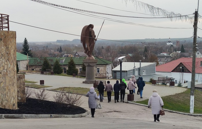 На улице школьники узнали о достопримечательностях нашего города и в преддверии Михайлова дня посетили скульптуру Михаила Архангела.