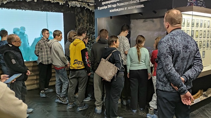 Для студентов была проведена экскурсия по залам музея. Они познакомились с историей города Михайлова с древнейших времён до начала 20 века, узнали об истории края в период Великой Отечественной войны и жизни города Михайлова в это трудное время.