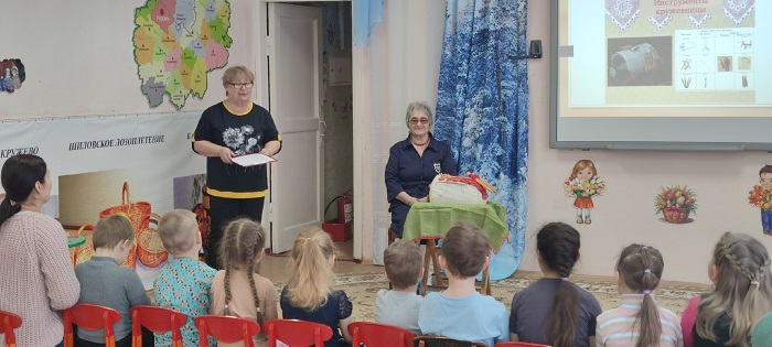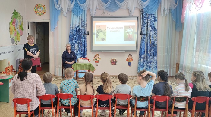 На мероприятие дети познакомились с древним народным промыслом Михайловским кружевоплетением. Сотрудник музея рассказала детям сказку о зарождении кружева. Дети с восторгом прослушали рассказ, задавали вопросы. Мероприятие прошло оптимистично и радостно.