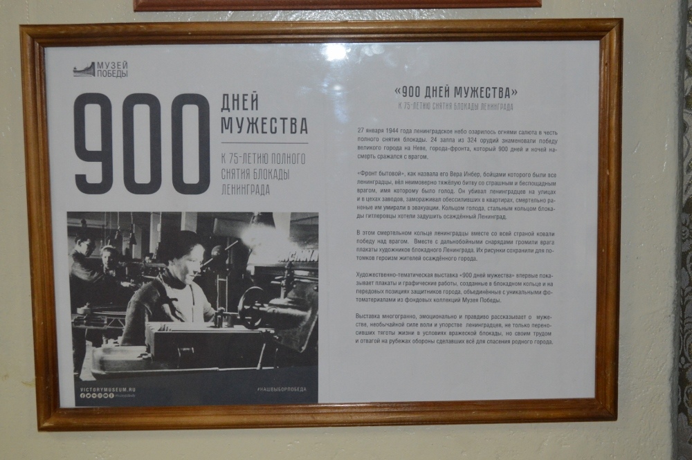 Выставка «900 дней мужества», посвящённой 75-летию снятия блокады Ленинграда из фонда Музея Победы (г. Москва)