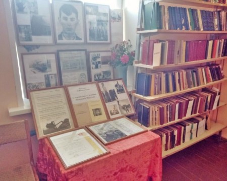 Выставка "С гордостью о земляке", посвященная Анатолию Мерзлову в Щетининской библиотеке