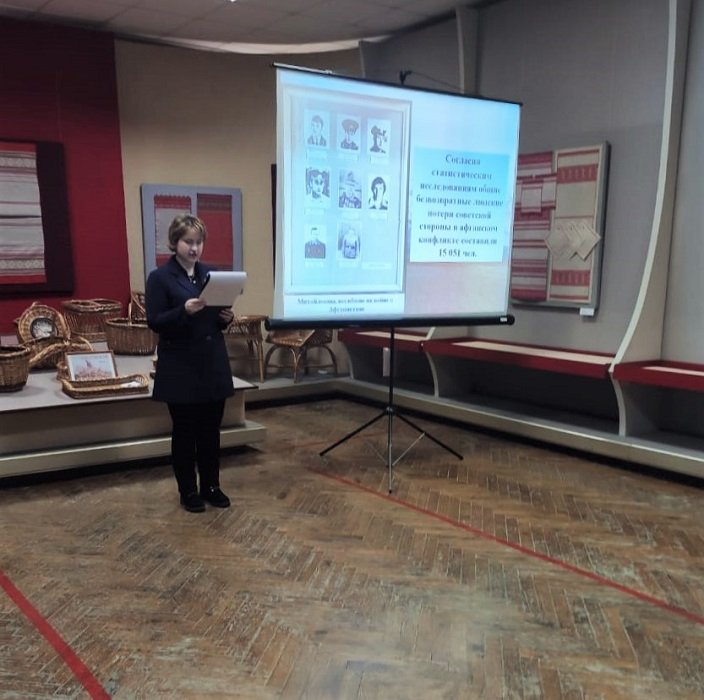 15 февраля 2022 года в МУК «Михайловский исторический музей» прошла лекция-презентация «Этот подвиг будет жить в нашей памяти всегда», посвящённая годовщине вывода советских войск из Афганистана. На мероприятии присутствовали студенты ОГБПОУ «Михайловский техникум им. А. Мерзлова». На мероприятии, благодаря студентам прозвучали стихи об афганской войне, сотрудниками музея были рассказаны события в которых, участвовали наши земляки воины-интернационалисты, и в завершении наши посетители просмотрели кадры видеохроники.
