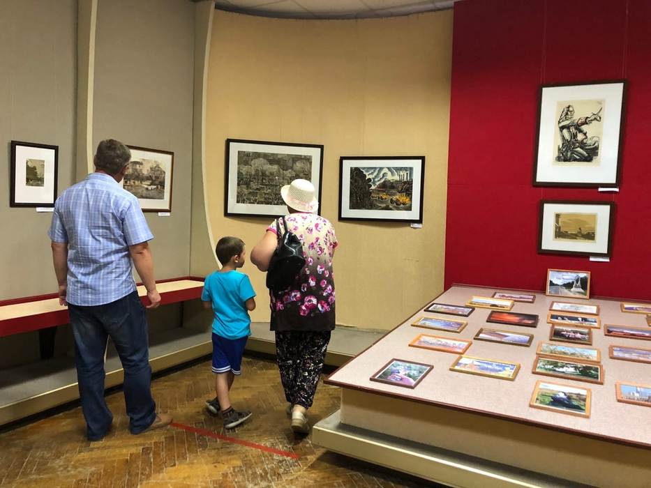 Сотрудник музея познакомила гостей выставки с работами В.С. Вильнера в которых можно видеть калейдоскопически меняющуюся картину современных улиц, с мелькающим транспортом, ремонтными работами и снующими в разных направлениях прохожими. Ленинградский график М.С. Чарнецкая предпочитает писать уютные скверы и площади города с нарядной, отдыхающей публикой. В графических листах Е.Е. Айзенштадт и О.А. Почтенного представлены трудовые будни города – крупнейшего промышленного центра страны.