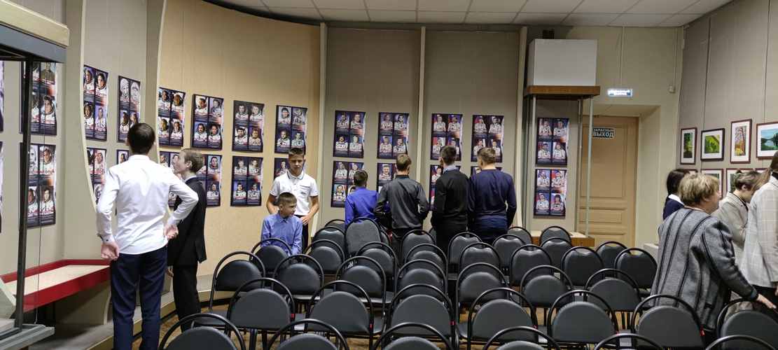 Гостям выставки рассказали - портреты расположены в порядке очередности полётов, начиная с Ю.А. Гагарина. 110 космонавтов уже завершили карьеру. 14 космонавтов находятся в действующем отряде. Выставка будет работать с 08.09.2022 г. по 29.09.2022 г.