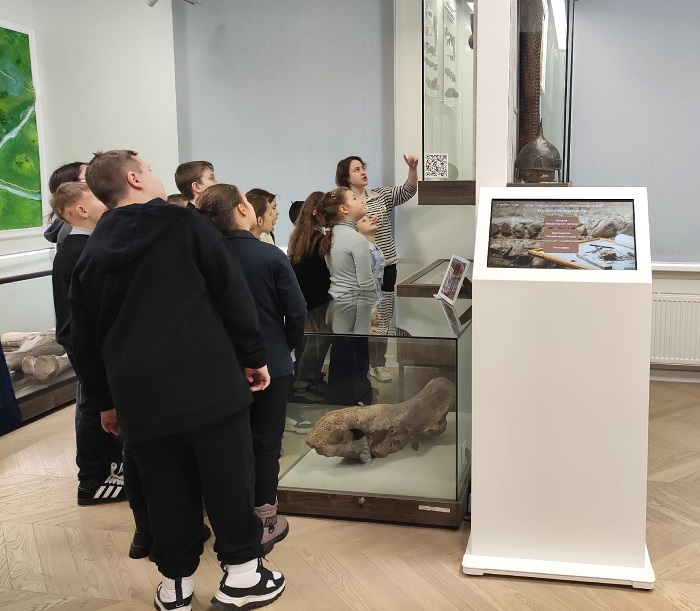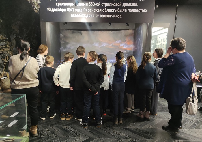 В залах второго этажа школьники познакомились с событиями 1941 года и освобождением города от немецко-фашистских захватчиков. Учащиеся увидели фотографии уроженцев Михайловской земли, которые получили звание Героя Советского Союза, документы и личные вещи участников Великой Отечественной войны.