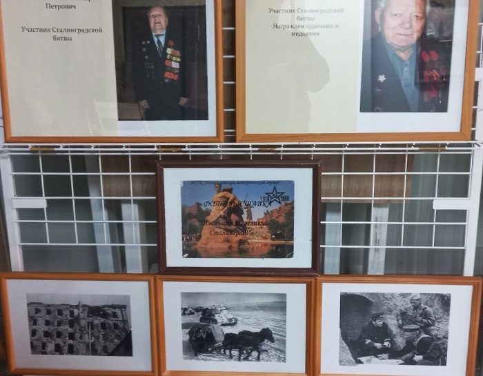 На выставке представлены фотографии с михайловцами-участниками битвы под Сталинградом, фотодокументы с материалами, рассказывающими о героизме и мужестве советских людей.